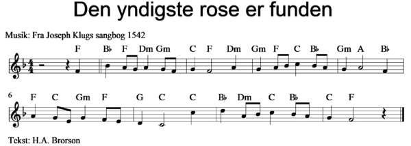 - Den yndigste rose er funden i Den Danske Salmebog (nr. 122)