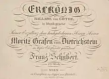 Titelbladet til førsteudgaven af Schuberts musik til Der Erlkönig
