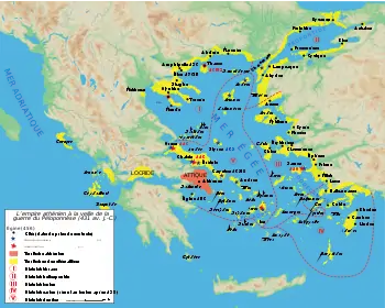 Det Deliske Sørforbund blev aldrig formelt det Athenske Imperium. Men ved begyndelsen på den Peloponnesiske krig, var der kun Khios og Lesbos tilbage, der bidrog med skibe, og disse stater var nu alt for svage til at rive sig løs alene. Lesbos prøvede at gøre oprør, men det slog fuldstændigt fejl. Khios, det største mest og magtfulde af de oprindelige medlemmer efter Athen, var de sidste til at gøre oprør. I efter Ekspeditionen til Syrakus havde de succes i flere år og opmuntrede hele Jonien til at gøre oprør. Athen var dog stadig stærk nok til at undertrykke disse oprør.