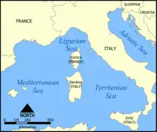 Det Liguriske Hav er på sit dybeste 2850 meter, nordvest for Korsika.