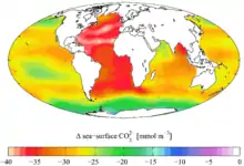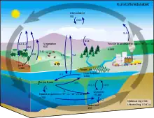 Hydrosfæren er et af de reservoirer, som indgår i kulstofkredsløbet, og indeholder anslået 38.000 gigaton kulstof. Kulstofindholdet af verdenshavene stiger med 2 gigaton om året.