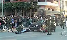 Protesterne i Bahrain er en serie demonstrationer oprindeligt for at opnå større politisk frihed og respekt for menneskerettighederne, uden samtidig at true monarkiet.[28] Protesterne begyndte den 14. februar og var stort set fredelige indtil 17. februar da politiet rykkede mod demonstranter der sov ved det kendte monument i Manama. Politiet dræbte tre demonstranter.[29][30] Efterfulgt af kampene mod politiet øgede demonstranterne deres protester.[31]