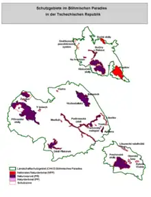 Oversigtsplan over det beskyttede område Tjekkisk Paradis