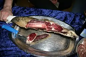 - Ræstur er velhængt, halvtørt kød eller fisk i starten af gæringsprocessen.
