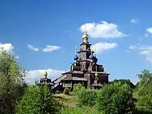 Kirken er en kopi af en kirke, der er bygget i 1765 i den russiske landsby Kosljatjewo. Den er 27 meter høj og forsynet med otte forgyldte kupler.