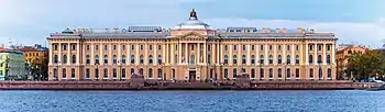 Bygningen, der huser Det russiske kunstakademi blev opført i 1764-89 efter tegninger af Jean-Baptiste Vallin de la Mothe og Aleksandr Kokorinov.