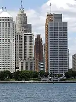 Detroit viser ved flodbredden stor arkitektonisk variation. De postmoderne, nygotiske spir på Comerica Tower ved Detroit Center (1993) blev tegnet, så de harmonerer med byens art deco-skyskrabere. Sammen med Renaissance Center danner de en distinkt og genkendelig skyline. Eksempler på art deco findes blandt andet i Guardian Building og Penobscot Building i centrum, og Fisher Building og Cadillac Place i New Center-området nær Wayne State University. Blandt byens prominente bygninger kan nævnes Fox Theatre, Detroit Opera House og Detroit Institute of Arts.