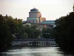 Hovedlokationen for museet er en lille ø i floden Isar. Øen havde ingen bygninger før 1772, da den regelmæssigt var oversvømmet før bygningen af Sylvensteinspeicher.