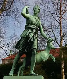 Diana er den romerske jagtgudinde, forbundet med vilde dyr og skove. Datter af Jupiter og Latona og tvillingesøster til Apollo. Hun var også månens gudinde og et symbol på kyskhed. Hun pristes for sin styrke, atletiske ynde, skønhed og færdighed indenfor jagt.