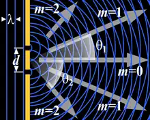 Når bølger (af f.eks. lyd eller lys) sendes igennem snævre åbninger godt og vel på størrelse med bølgernes længde, spredes de i bestemte mønstre: Dette fænomen kaldes for diffraktion. Et eksempel på optisk diffraktion ses på cd- og dvd-skiver, hvor informationen på »data-siden« danner et mere eller mindre regelmæssigt mønster med detaljer på størrelse med lysbølger. Lys med forskellige bølgelængder (dvs. forskellige farver) reflekteres i forskellige retninger, så set i ellers »farveløst« hvidt lys stråler disse skiver i farverige »regnbuemønstre«.