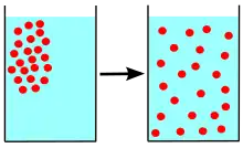 Diffusion er generelt et resultatet af partiklers tilfældige bevægelser. Jo højere temperatur, jo hurtigere bevæger partiklerne sig, og jo mindre de er, desto hurtigere kan de bevæge sig. Diffusion foregår altid fra høj til lav stofkoncentration, i det der fra området med høj koncentration er flere partikler, som tilfældigt bevæger sig væk.