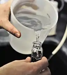Dihydrogenmonoxid er en kemisk betegnelse for vand, der er blevet brugt i spøgende sammenhæng. Ved at bruge et meget fremmedartet navn for vand og samtidig nævne en række negative effekter, kemikaliet kan have, har det været muligt at overbevise folk om, at brugen af kemikaliet stringent skal reguleres, mærkes som farlig eller forbydes. Spøgen er udviklet til at illustrere, hvordan manglen på videnskabelig læsefærdighed og overdreven analyse kan føre til ubegrundet frygt.[1] Dihydrogenmonoxid, forkortet til DHMO, er det navn for vand, der stemmer overens med de basale regler for kemisk nomenklatur,[2] men er ikke blandt de navne, der er udgivet af IUPAC,[3][note 1] og det bruges nærmest aldrig.
