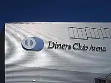 Diners Clubs logo på Diner Club Arena i Rapperswil, Schweiz.