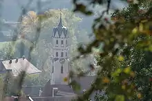 Tårnet af den katolske St.-Anna-Kirche i Dinkelscherben