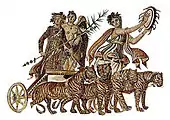 Dionysos - hos romerne kaldt Bacchus - var vinens og ekstasens gud i græsk mytologi. Han hørte til blandt Olympens tolv guder.[1] Skønt han var søn af Zeus og Semele, datter af kong Kadmos og gudinden Harmonia, som selv var datter af Ares og Afrodite,[2] gjaldt han ikke for at være nogen hero. I stedet blev hans liv ophav til dithyramben (oprindeligt en hyldest til Dionysos), komedien og tragedie. [3]
