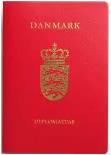 Danske diplomatpas har rødt omslag med påskriften "Danmark – Diplomatpas".