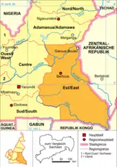 Kort over den østlige del af Cameroun, med Djafloden i det sydøstlige hjørne