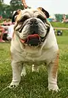 Engelsk bulldog | England | for sin stærke brystkasse og stædighed, men ikke for meget af den engelske Bulldog, så Dogoen ikke fik tiltendes til at være for lille og få underbid.[6] |