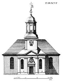 Tegning af Garnisions Kirke, som Domenico Pelli arbejdede på