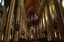 Katedralens skib er 15 meter bredt og 37 meter højt, dens arkade er 20 meter høj, den indre midtergang er 21,3 meter og den ydre midtergang er 9,3 meter høj. Stræbepiller blev brugt til at stabilisere bygningens struktur, men da dette var en ganske ny teknik blev væggene fortsat lavet ganske tykke for at bære trykket.