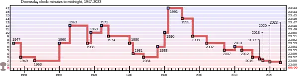 Dommedagsuret (The Doomsday Clock), har siden 1947 søgt at estimere hvor tæt menneskeheden/kloden er på udslettelse. Udgives af Bulletin of the Atomic Scientists, en offentlig hjemmeside der analyserer og formidler viden om (især negative) konsekvenser af bl.a. atomvåben, klimaændringer og nye teknologier. Grundlagt i 1945 af forskere fra Manhattan Project, der ønskede at delagtiggøre offentligheden i mulige konsekvenser af deres arbejde.