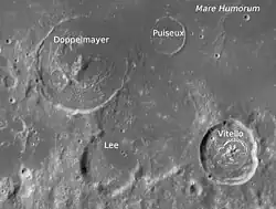 Doppelmayerkratere (ø.tv.) med omkringliggende kratere | ||