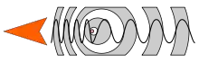 - Når kilden bevæger sig i en retning der bringer den tættere på modtageren, opfattes bølgerne som kortere end de bølger kilden afsendte, og modtageren opfatter derfor en frekvens (eller "tone") der er højere end kildens faktiske frekvens.
