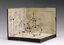 En molekylemodel af penicillin fremstillet af Hodgkin ca. 1945.