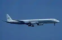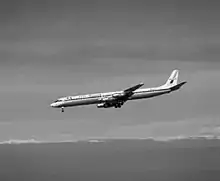 Douglas DC-8 er et 4-motorers jettrafikfly og Douglas' første passagerjetfly. Flyet var Douglas' svar på Boeing B707, som blev udviklet samtidig med DC-8. Da US Air Force afgav mange ordrer på KC-135-tankflyet hos Boeing (den militære variant af 707), kunne Boeing ikke iværksætte produktion en af den civile 707-udgave, hvilket gav Douglas mulighed for at introducere DC-8 på markedet før Boeing kunne levere den civile Boeing 707, der var billigere end DC-8.