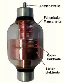 En variabel kondensatorer med vakuum som elektrisk isolation.