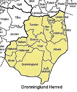 I under navnet Dronninglund Herred ligger følgende sogne: