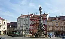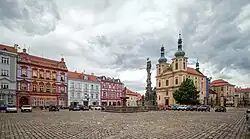 Vor Frue Bebudelses Kirke ligger ved siden af slottet på Republiky-pladsen i det historiske centrum. Det blev bygget i barokstil i 1720'erne. Andre værdifulde bygninger på pladsen omfatter springvandet med statuen af Sankt Florian fra 1728 og Søjlen af den hellige treenighed, bygget i 1750-1760.[6]