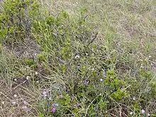 I de bjergrige dele af North Carolina, USA, findes blandede løv- og nåleskove på kalkrig bund. Her vokser arten sammen med bl.a. blyantene, canadisk akeleje, Celtis tenuifolia (en art af nældetræ), Corydalis flavula (en art af lærkespore), Frangula caroliniana (en art af tørst), hvidask, hvidelm, liden præriegræs, lodden hickory, nikkende sorghastrum, præriehirse, rundbladet snebær, rødeg, rødløn, svinehickory og virginsk fyr [1]