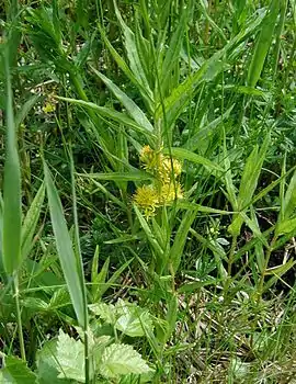 Den findes ofte voksende sammen med bl.a. alm. fredløs, kattehale, alm. mangeløv, blåtop, kragefod, skjolddrager, lysesiv, smalbladet kæruld og vandmynte.