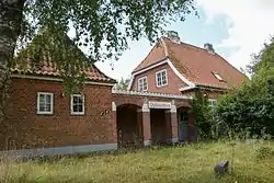 Stationsbygningen blev tegnet af arkitekt Robert V. Schmidt og opført i 1916 af murermester Anton Jeppesen fra Taulov.