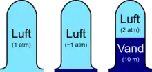 Dykkerklokken til venstre er fri af vandet (typisk vil den stå på et skib). Her er lufttrykket inden i klokken det samme som det omgivende lufttryk (normalt omkring 1 atm.). Klokken i midten står med bunden lige i vandoverfladen. Lufttrykket inden i klokken er stort set som det omgivende lufttryk, da vandfladen inden i klokken er på samme niveau, som vandoverfladen omkring klokken. Klokken længst til højre er derimod sænket 10 meter ned i vandet. Vandets tryk påvirker direkte luftens tryk (de er ens) og da vandtrykket her er 2 atm. og med baggrund i boyles lov (der afledt siger at ) vil luftens volumen være halveret. Grunden til at dette kan lade sig gøre, er at alle øvrige sider af klokken er fuldstændigt lukkede. Blot en enkelt lille åbning vil gøre klokken begrænset anvendelig eller helt uanvendelig.