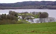 På Dynæs findes rester af et anseligt, middelalderligt voldsted. Det består af en firesidet borgbanke og et system af forsvarsgrave. De stejle sider er af usædvanlig højde, idet de hæver sig 10 meter over det omliggende terræn og 12 meter over søen.