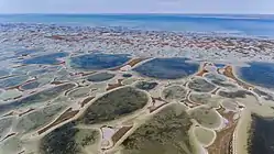 Overfor øen over Dzjarylhatj-bugten ligger byen Skadovsk. Dzharylhatj og dens bugt er en del af Dzjarylhatskyj Nationalpark.