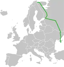 E105 er en europavej der begynder i Kirkenes i Norge og ender i Jalta i Ukraine. Undervejs går den blandt andet gennem: Murmansk, Petrozavodsk, Sankt Petersborg, Moskva og Orjol i Rusland; Kharkiv, Simferopol og Alushta i Ukraine.[1]