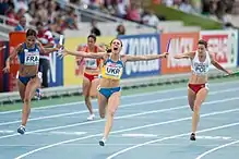| 4 x 400 meter | Tatiana Firova Anastasija Kapatjinskaja Antonina Krivosjapka Ksenija Ustalova | 3:21.26 WL | Janin Lindenberg Esther Cremer Fabienne Kohlmann Claudia Hoffmann | 3:24.07 | Nicola Sanders Marilyn Okoro Perri Shakes-Drayton Lee McConnell | 3:24.32 |
