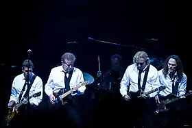 ![]() Eagles (venstre mod højre): Glenn Frey, Don Henley, Joe Walsh og Timothy B. Schmit under deres Long Road Out of Eden Tour | |