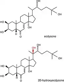 Ecdysteroider findes også i mange planter, for det meste som toksiner mod planteædende insekter. Disse er har været benyttet som naturlægemidler, men har vist sig at have cytotoksiske egenskaber.