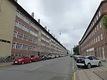 Nr. 1 er en karré fra 1940 i gule mursten med store vinduer. Ud til Edvard Griegs Gade er der en karakteristisk buet trappeopgang, der blidt favner den besøgende. Alle lige husnumre er fra 1920 og er i røde mursten i tre etager. Arbejdernes Andels Boligforening, nu Boligforeningen AAB, er bygherre og huset minder meget om samtidigt boligforeningsbyggeri.[2] Numrene 10-20 slår ind og danner en have med et enkelt stort træ og vilde blomster. Nr. 22-28 er gårdhaver bag en lille indhegning. Nr. 3-25 A/B Edvard Grieg fra 1956. Spændende vinduespartier med ti fag vinduer meget tæt sammen og brystningen er i lodretstillede røde mursten.