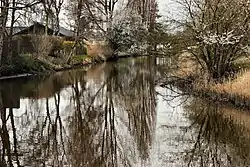 På sin vej mod Kasted Mose, er åen ikke større end en bæk og kendes på dette stykke også under navnet Moseåen.