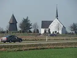 Sydøst for kirken står et senmiddelalderligt klokkehus af eg.