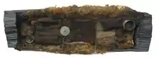 Ved pigens fødder havde man lagt en tøjbylt med de brændte knogler af et 5-6 årigt barn, og ved pigens hoved lå en lille æske af birkebark med mindre knogledele fra det samme barn.