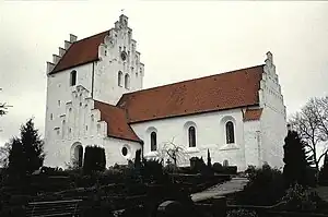 På en lav bakke i den gamle landsbys vestlige udkant ligger Ejby Kirke.