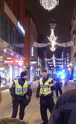 Den 11. december var en lørdag hvor Drottningatan var fuld af julehandlende.[2]
