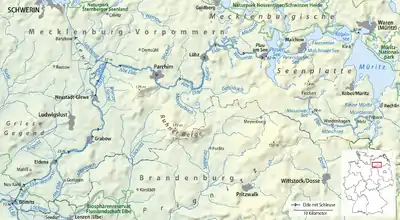 Kort over Eldes løb i Mecklenburg-Vorpommern