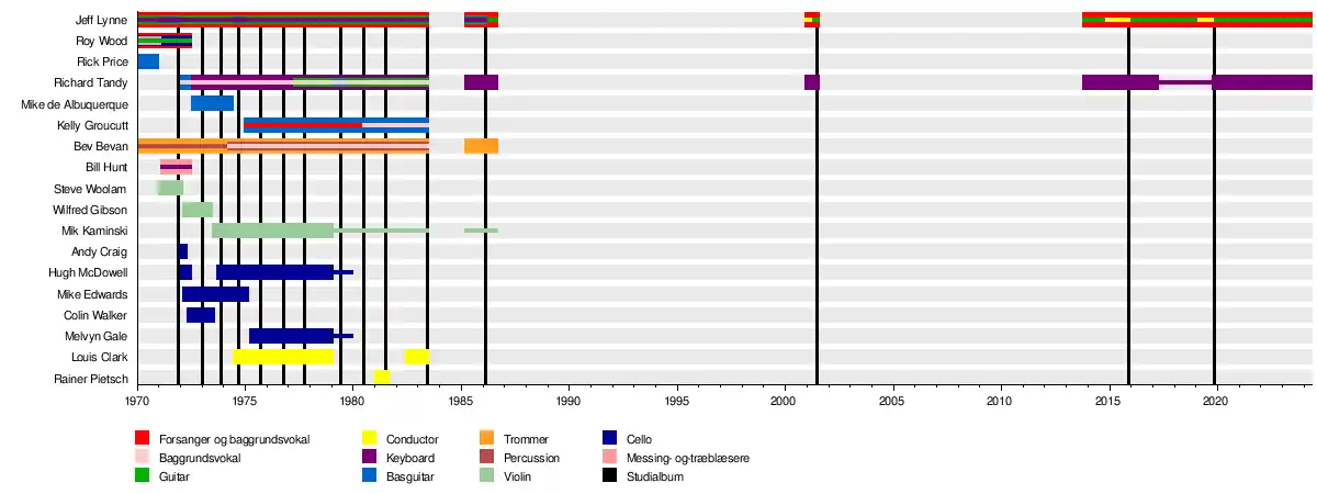 ELO blev dannet som følge af Lynnes og Woods ønske om at skabe moderne pop og rock-sange med klassiske overtoner. Det var en udløber af Woods tidligere band, the Move, hvor Lynne og Bevan også var medlemmer. I løbet af 1970'erne og 1980'erne udgav ELO en række top 10 albums og singler, inklusive to LP'er der nåede førstepladsen af den birtiske albumhitliste: den discoinspirerede Discovery (1979) og konceptalbummet Time (1981) med science-fiction-tema. I 1986 mistede Lynne interessen for bandet og opløste ELO. Bevan svarede igen ved at danne sit eget band, ELO Part II, der senere blev til the Orchestra. Efter en kort gendannelse fra 2000 til 2001 var ELO stort set inaktivt indtil 2014, hvor Lynne gendannde bandet sammen med Tandy som Jeff Lynne's ELO.[6]